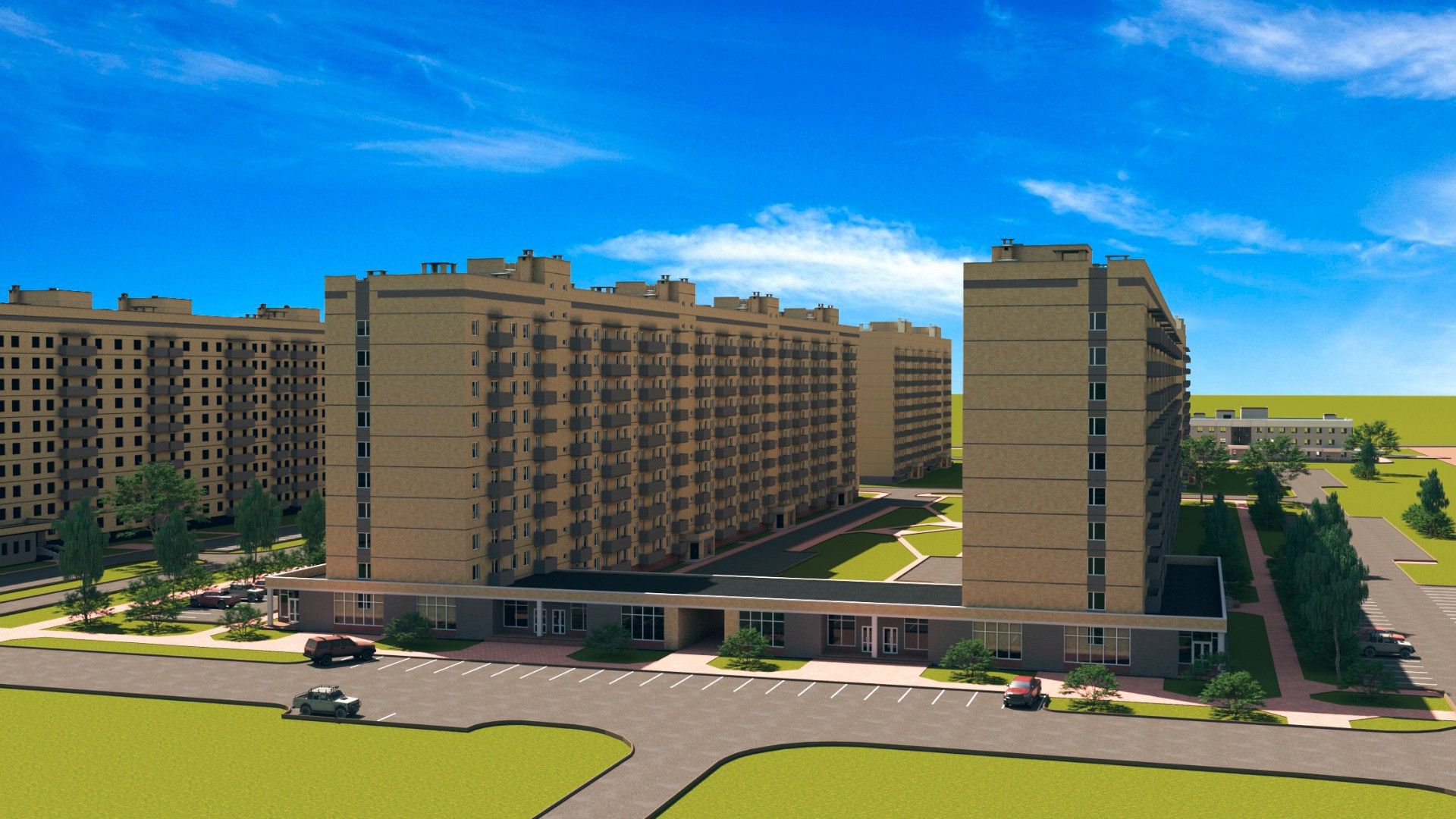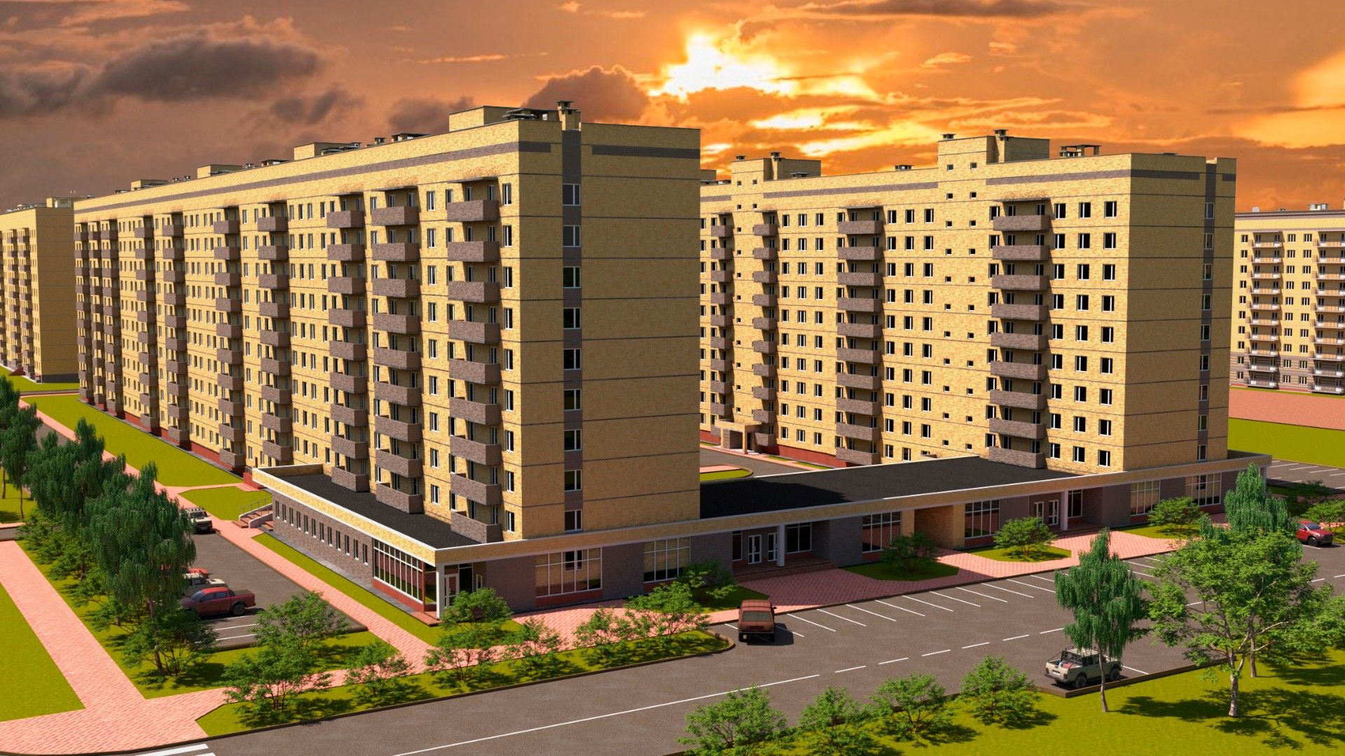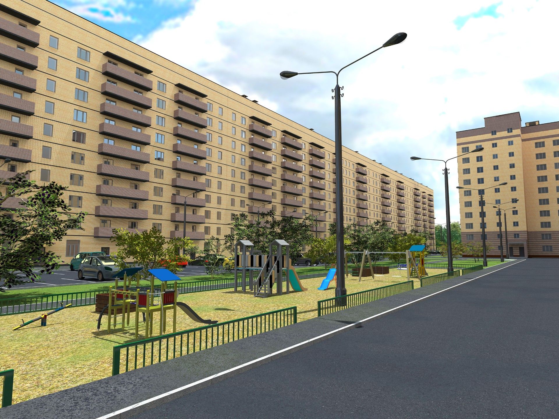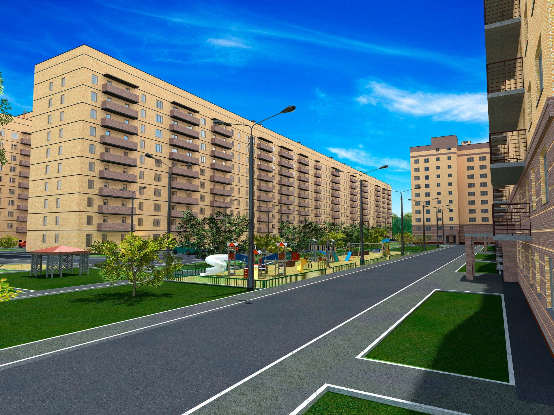 Традициям и духу местных жителей отвечает основной материал, выбранный для строительства - кирпич. Комплексность среды обеспечивает наличие комфортных дворовых пространств, изолированных от мест хранения индивидуального автотранспорта.
